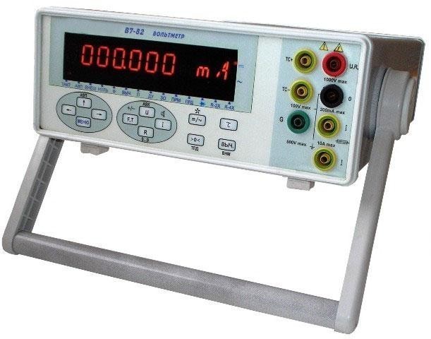 Вольтметр универсальный B7-82 предназначен для измерения напряжения постоянного тока и силы постоянного тока, среднего квадратичного значения напряжения переменного тока, сопротивления постоянному току, частоты и периода электрических сигналов и обеспечивающих математическую и логическую обработку результатов измерений.